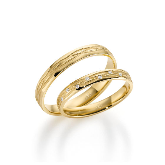 Dieser Ring ist in den Legierungen 585/- und 750/- Gelbgold, Weißgold und Roségold, sowie in den Platinlegierungen 600/- und 950/- erhältlich. Außerdem gibt es sie in verschiedenen Ausführungen, z.B. 1/3, 1/2, 2/3 und komplett ausgefasst.